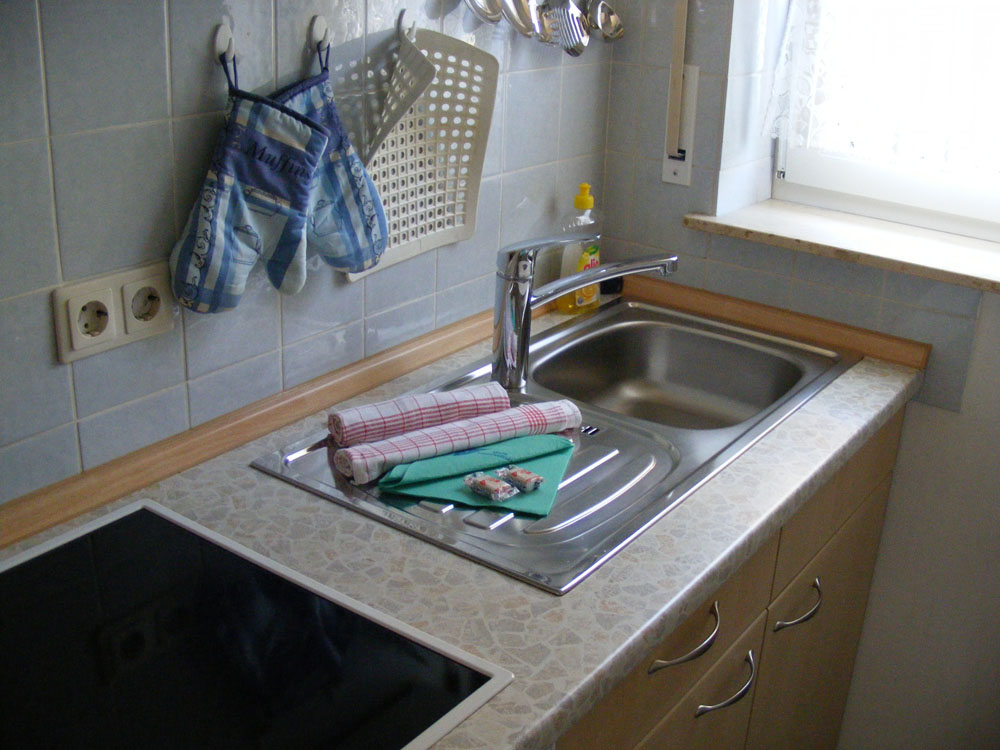 Die Küche ist mit Kühl- und Gefrierschrank, Herd mit Cerankochfeld / Backofen, Spülmaschine, Mikrowelle, Toaster, Wasserkocher, Eierkocher, Kaffeemaschine und Brotschneidemaschine ausgestattet.